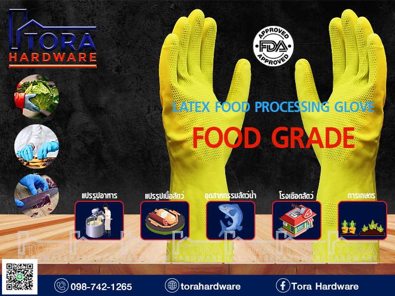 ถุงมือยาง 12 นิ้ว สีเหลือง