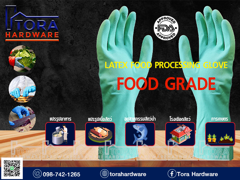 ถุงมือยาง 12 นิ้ว สีเขียว